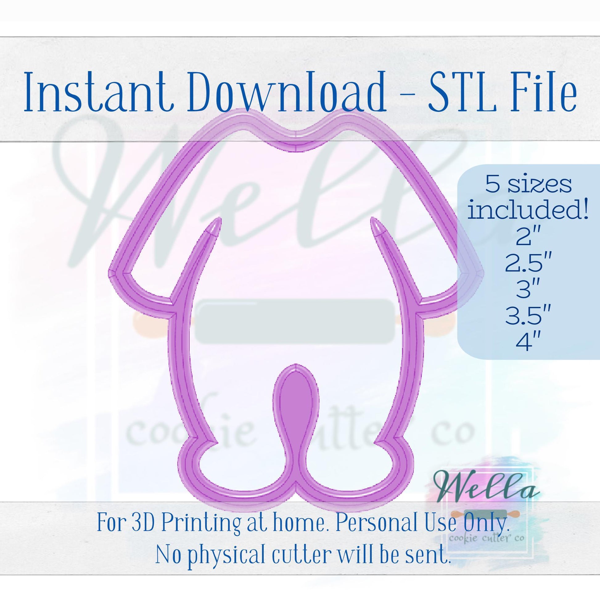 This is an instant download. No Reselling or Sharing. This is for Personal Use Only. For 3D printing at home. No physical cutter will be sent. This cutter was hand drawn by Wella Cookie Cutter Co. Not purchased from clipart. Do not recreate.