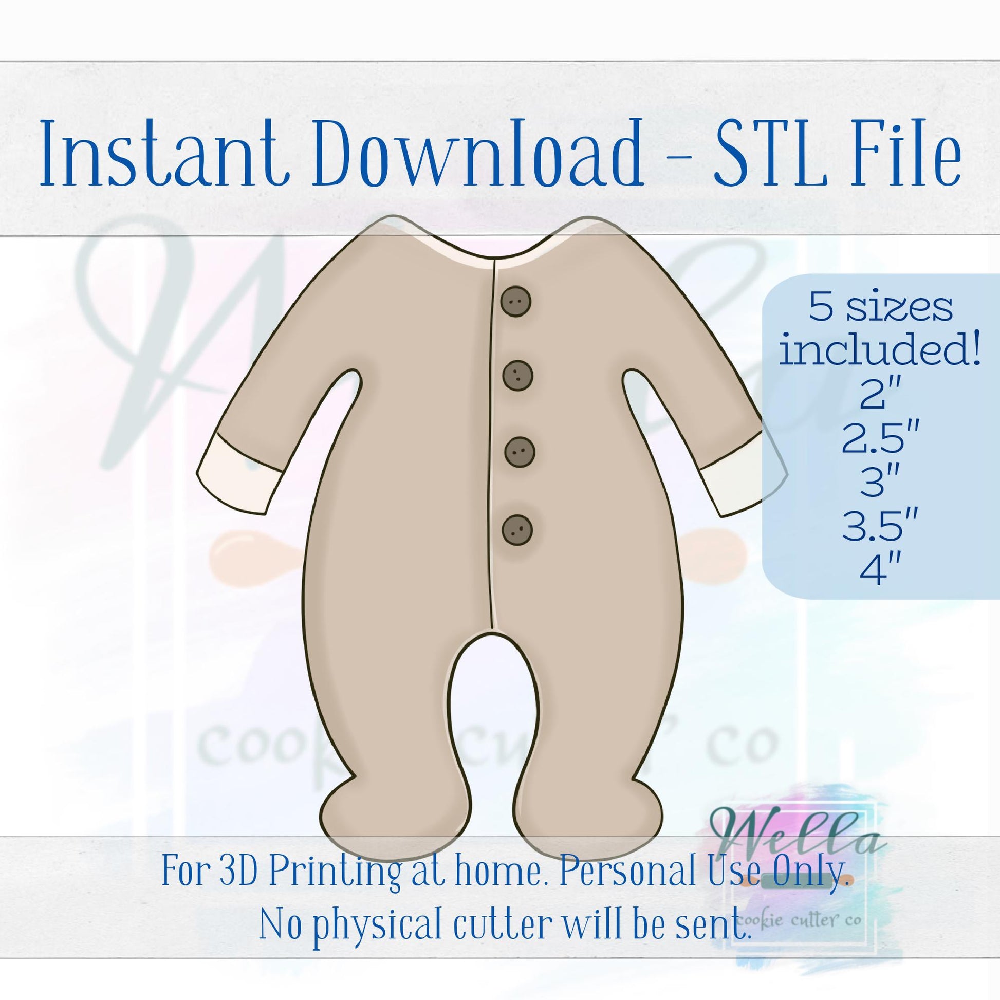 Digital STL File - Baby PJ's Cookie Cutter - 5 Sizes Included 2" 2.5" 3" 3.5" & 4"