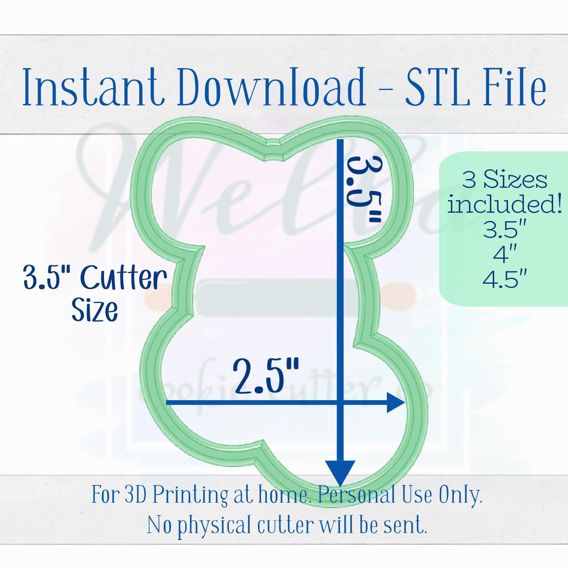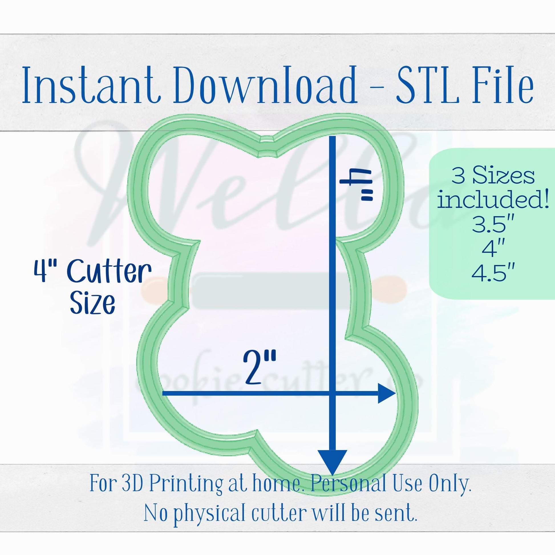 This is an instant download. No Reselling or Sharing. This is for Personal Use Only. For 3D printing at home. No physical cutter will be sent. This cutter was hand drawn by Wella Cookie Cutter Co. Not purchased from clipart. Do not recreate.