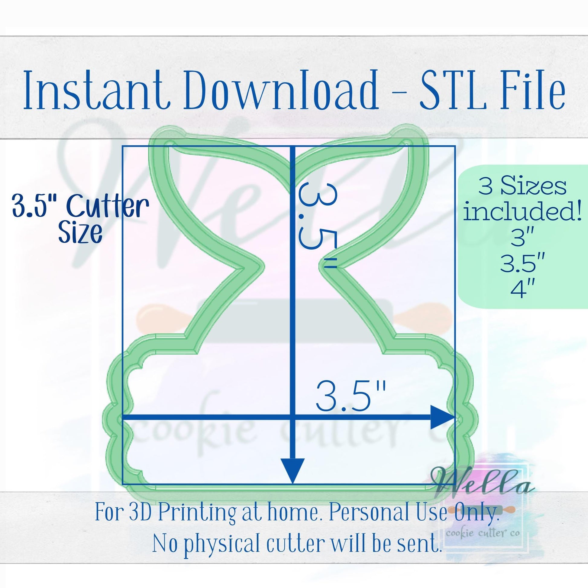 This is an instant download. No Reselling or Sharing. This is for Personal Use Only. For 3D printing at home. No physical cutter will be sent. This cutter was hand drawn by Wella Cookie Cutter Co. Not purchased from clipart. Do not recreate.