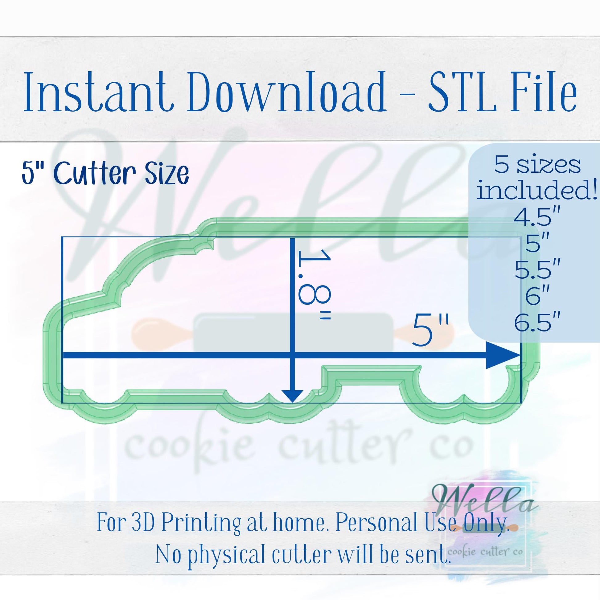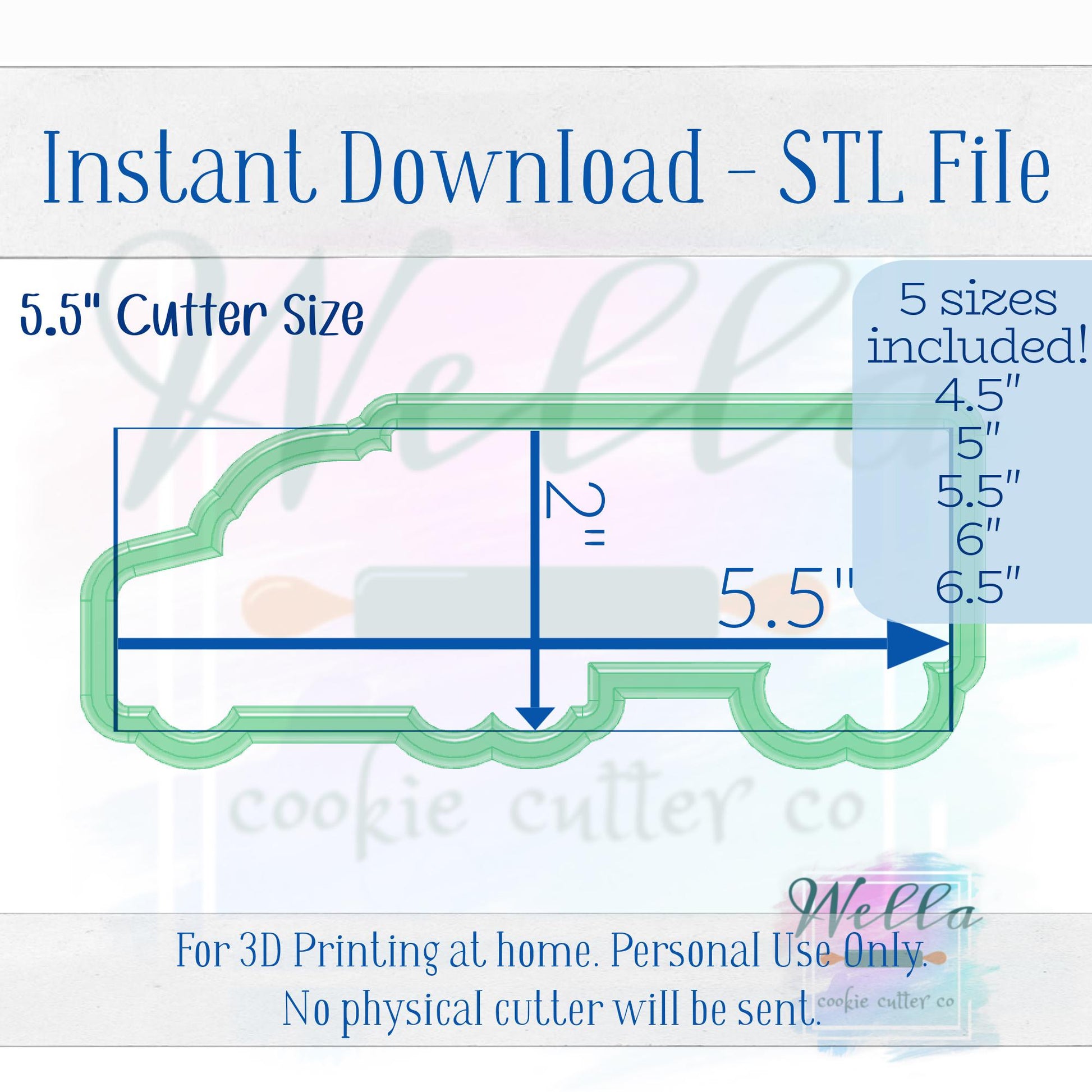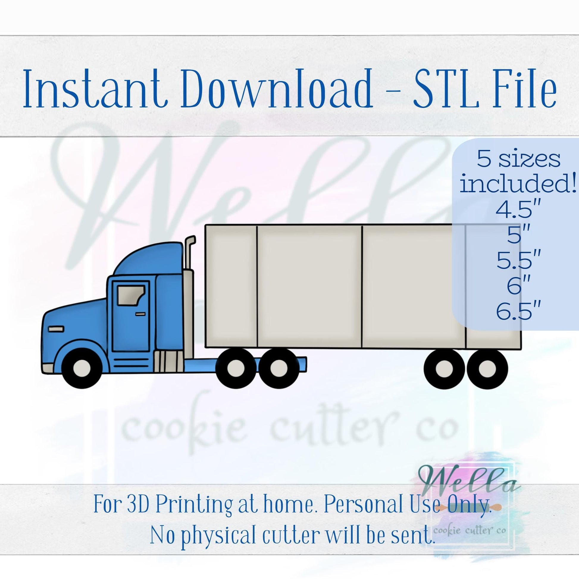 Digital STL File - Semi Truck Cookie Cutter - 5 Sizes: 4.5" 5" 5.5" 6" & 6.5"